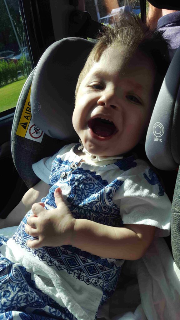 Ne-am temut din mai multe motive pe care unii dintre voi le banuiti (era primul lui drum mai lung, pana atunci facuse drumuri doar la spital sau la vreun control; nu stiam de va rezista atat in scaunel, caci era prima data cand il puneam intr-un scaun de masina; la Turnu avem un amarat de spital, clar nu s-ar fi bagat vreun doctor sa-i faca ceva, ar fi trebuit sa mergem la Alexandria; nu stiam cum va reactiona vazandu-se intr-un alt mediu, pana atunci stiind doar spitalul si apartamentul nostru…), insa, pentru Irina si pentru a ne invinge totusi aceasta teama de-a pleca prima data undeva cu el, am pornit la drum in ziua de 02.05.20, cu masina plina de toate cele necesare lui Vasi. Gratie faptului ca-i place plimbarea cu masina, a stat linistit in scaunel si-am ajuns cu bine in Turnu, fara a fi nevoie sa-l aspir prea des, chiar a si dormit o vreme. Nici pungile de urina nu s-au desprins, a decurs totul neasteptat de bine.